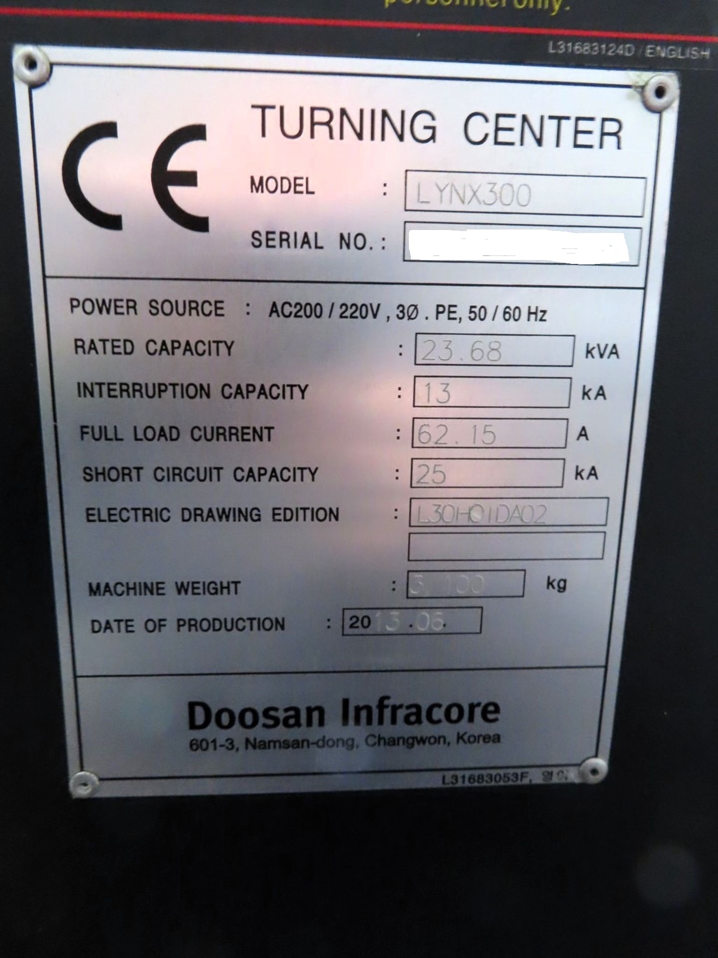 - Machine Weight (Approx.): 13,800 lbs