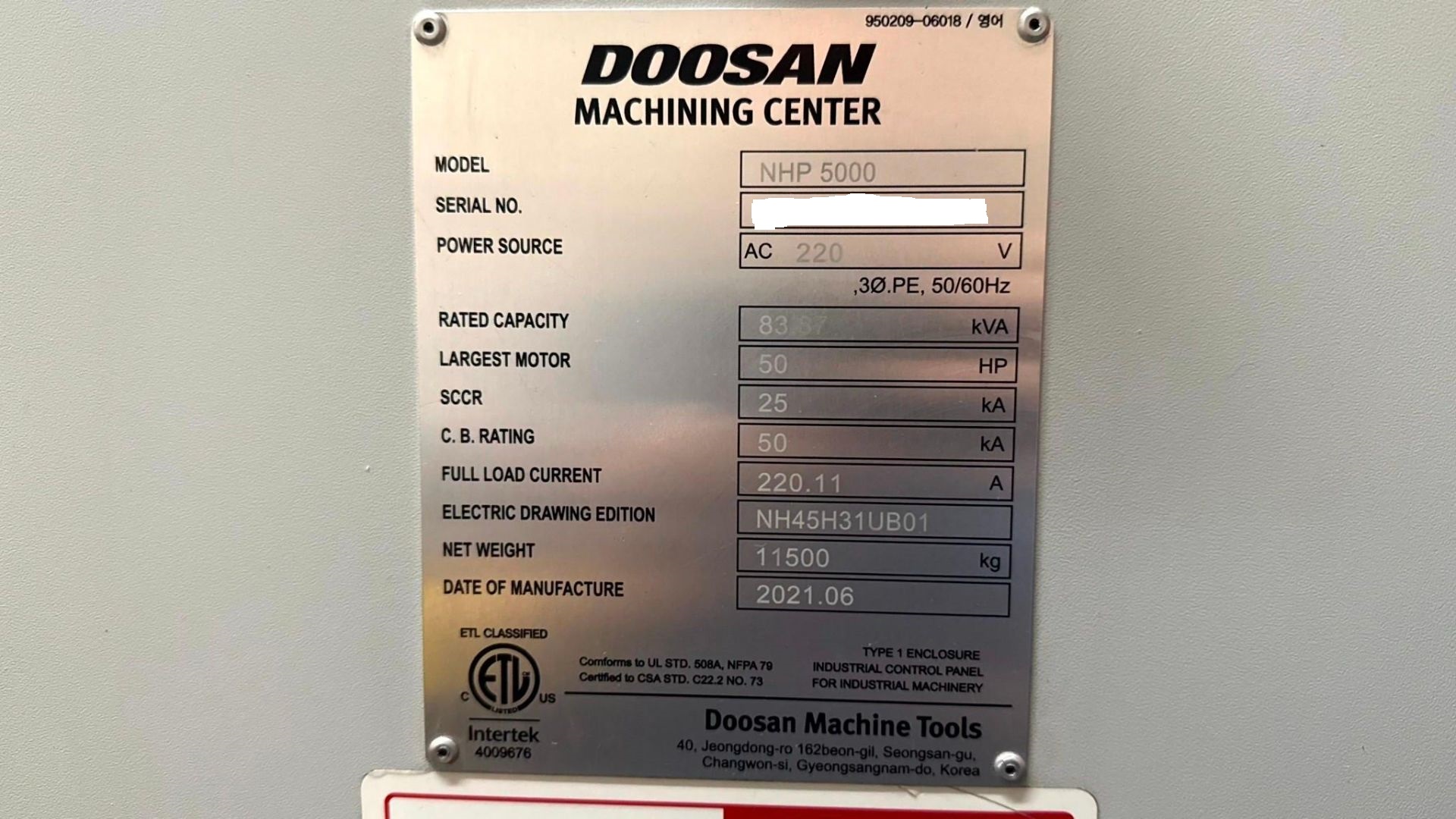 - Machine Weight (Approx.): 26,500 lbs