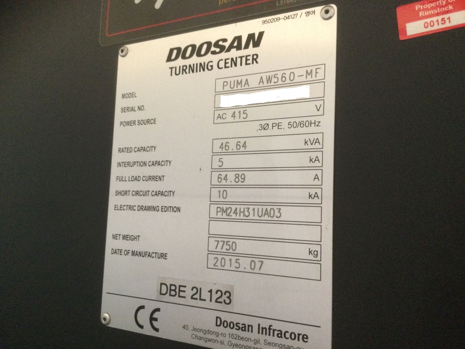Make/Model:Doosan PUMA AW560MF
