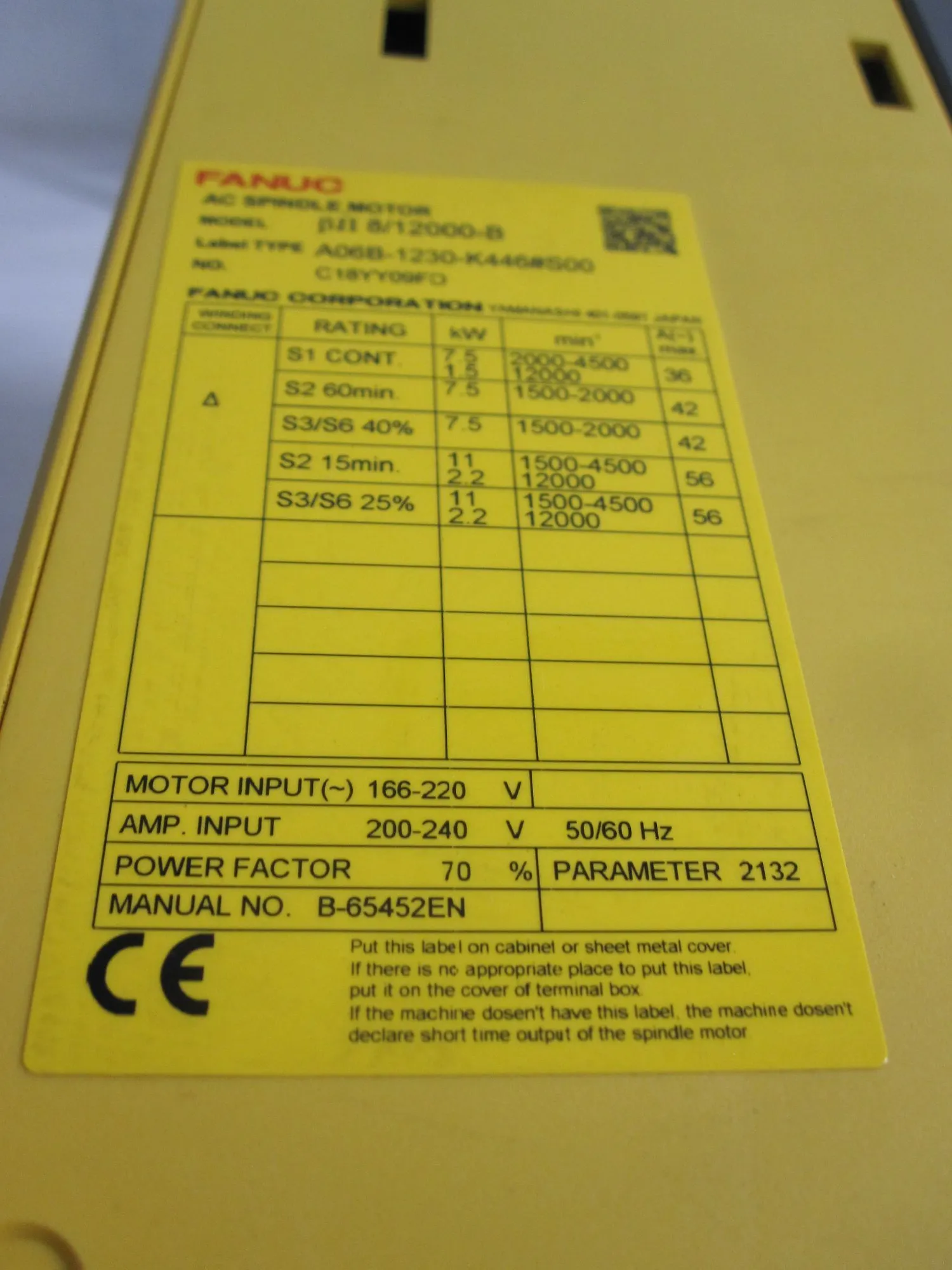 | Make & Model: | FANUC A06B-6321-H312 |