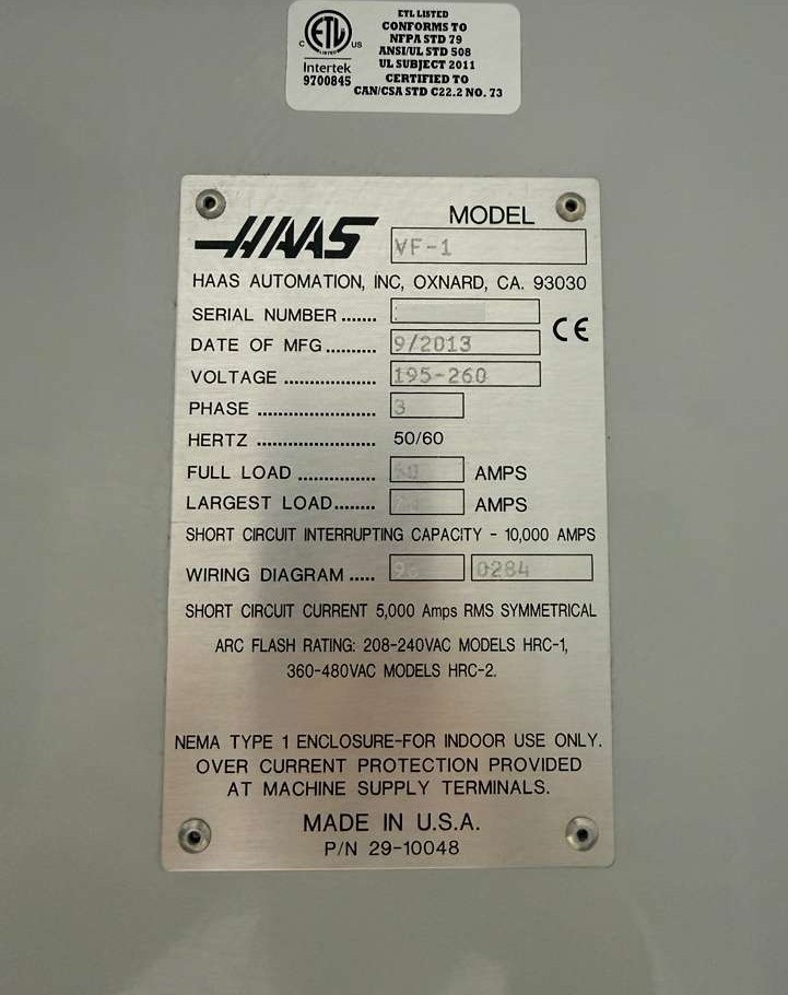Make/Model:Haas VF-1
