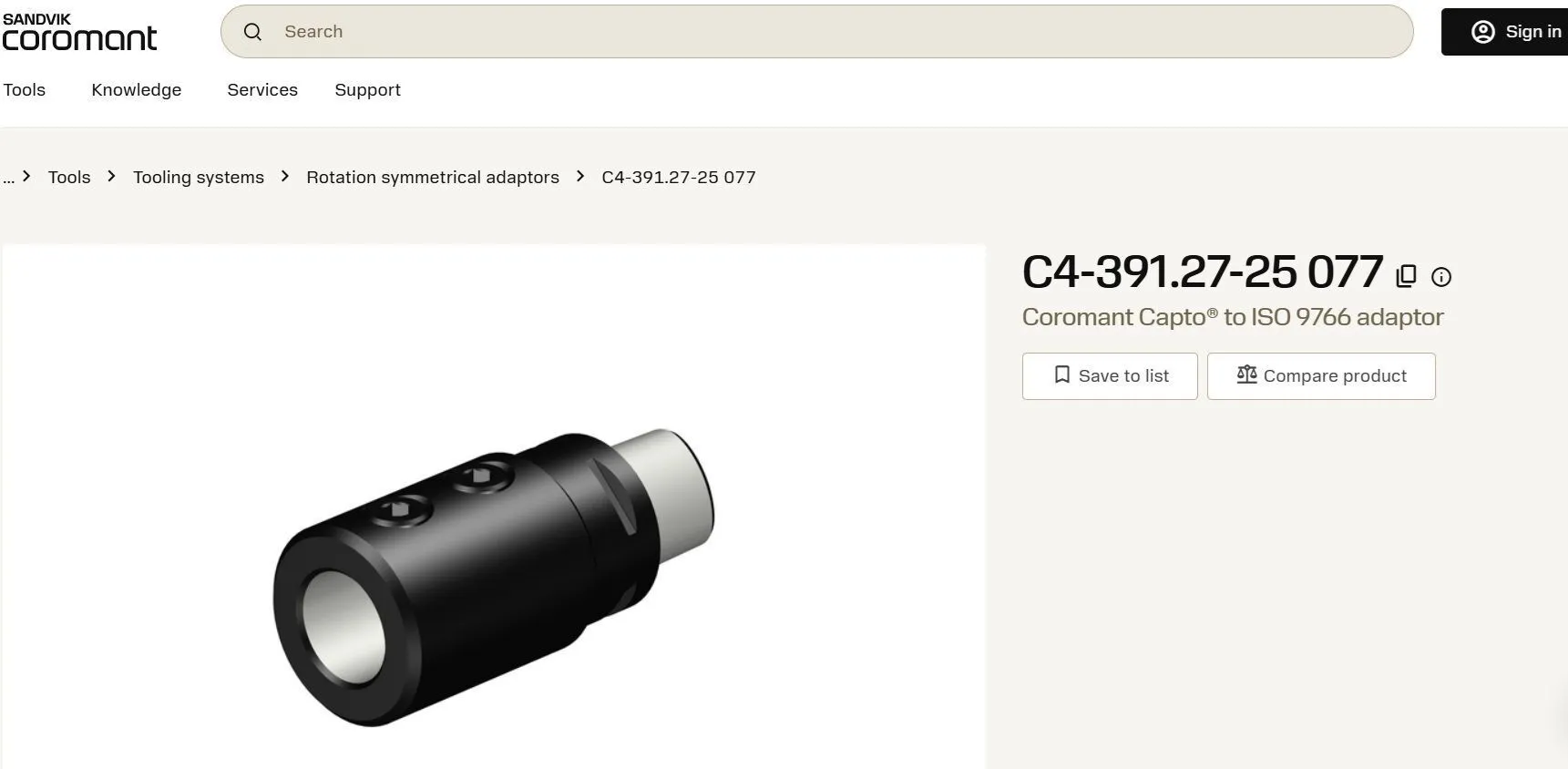 Sandvik Coromant C4-391.27-25 077 Coromant Capto® to ISO 9766 adaptor