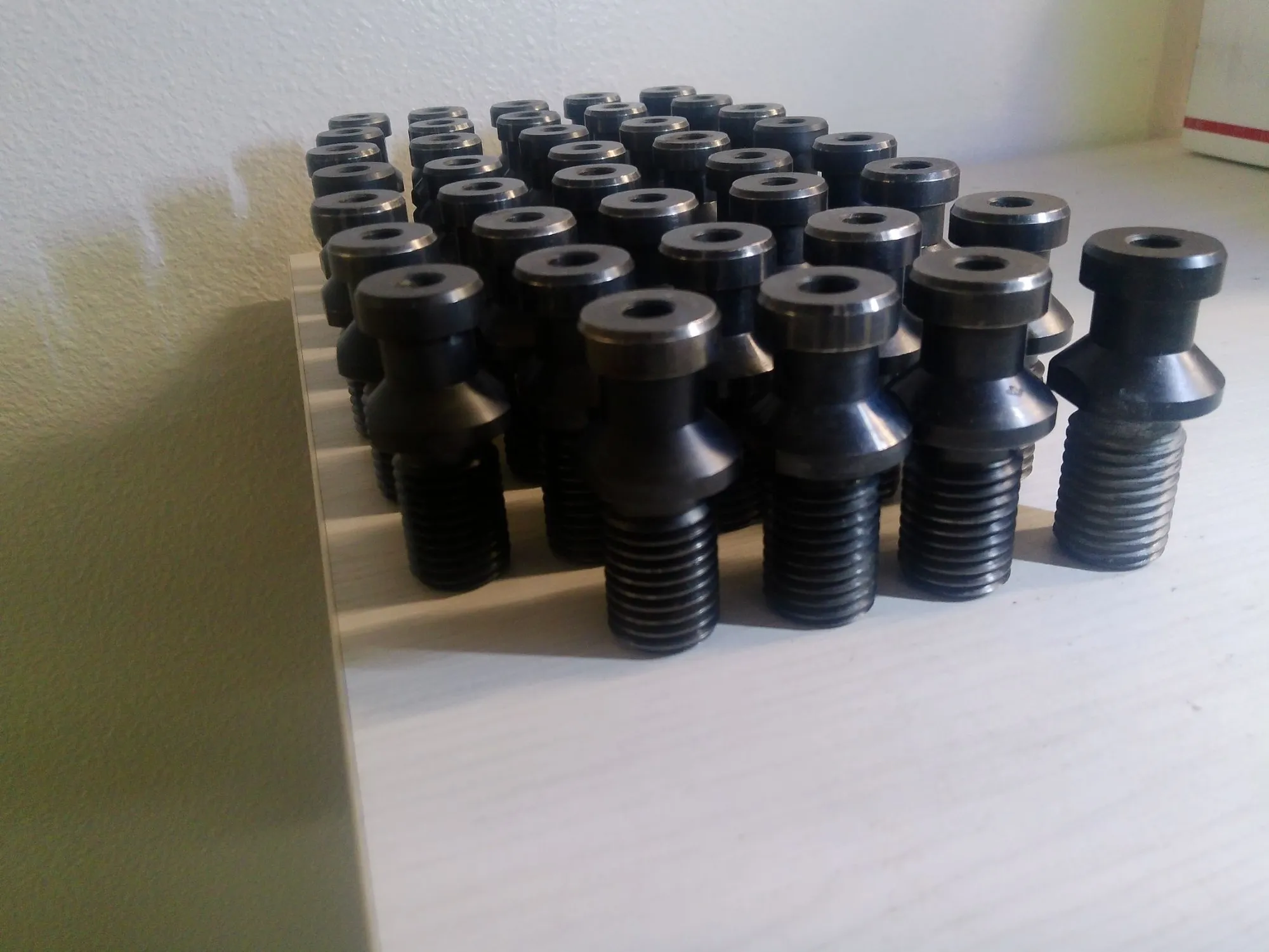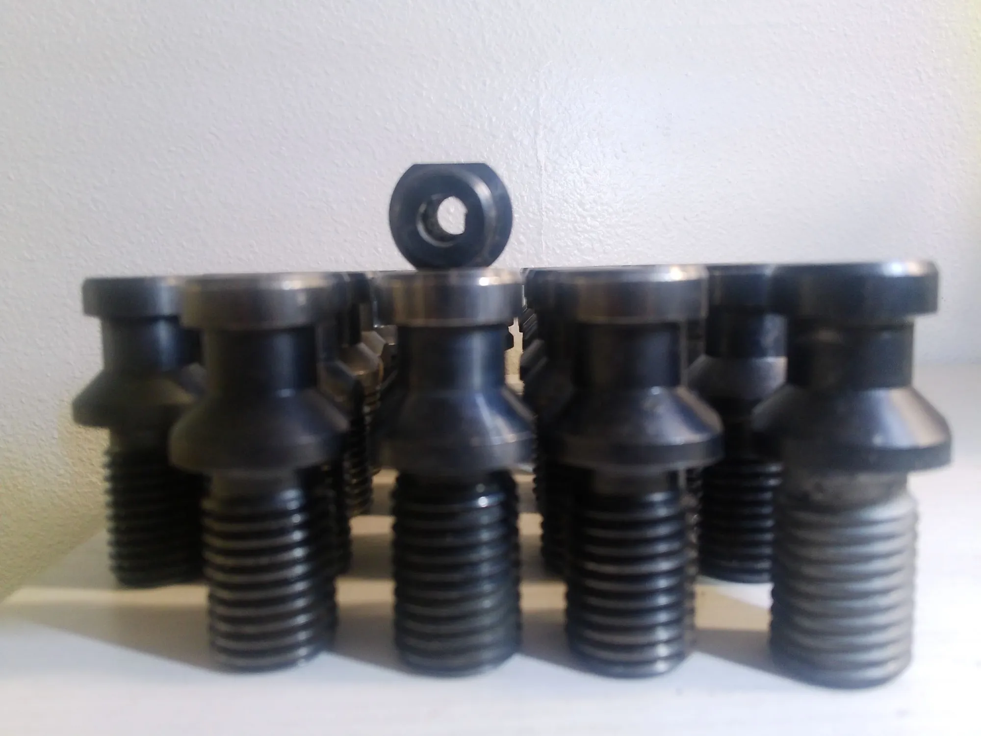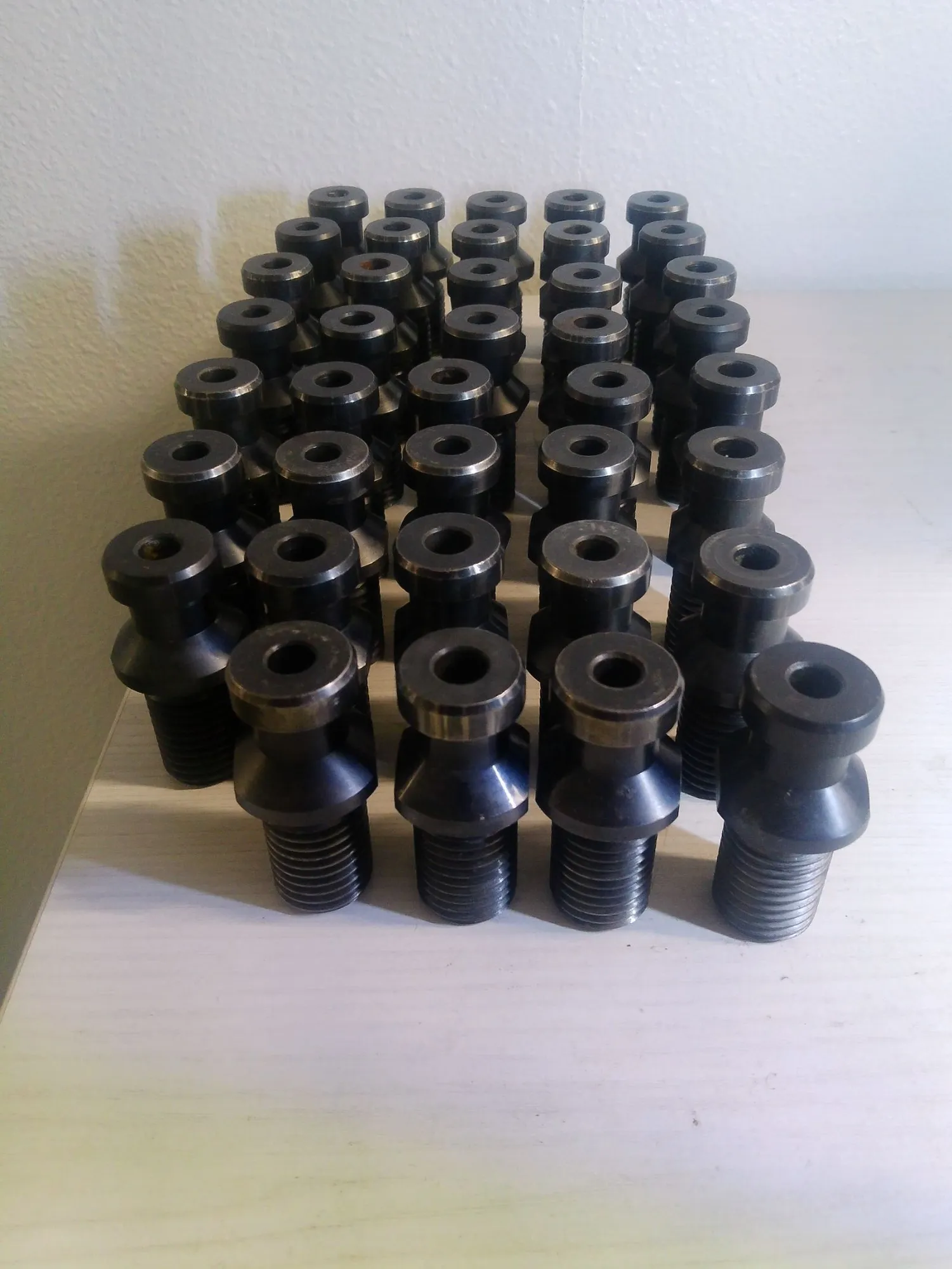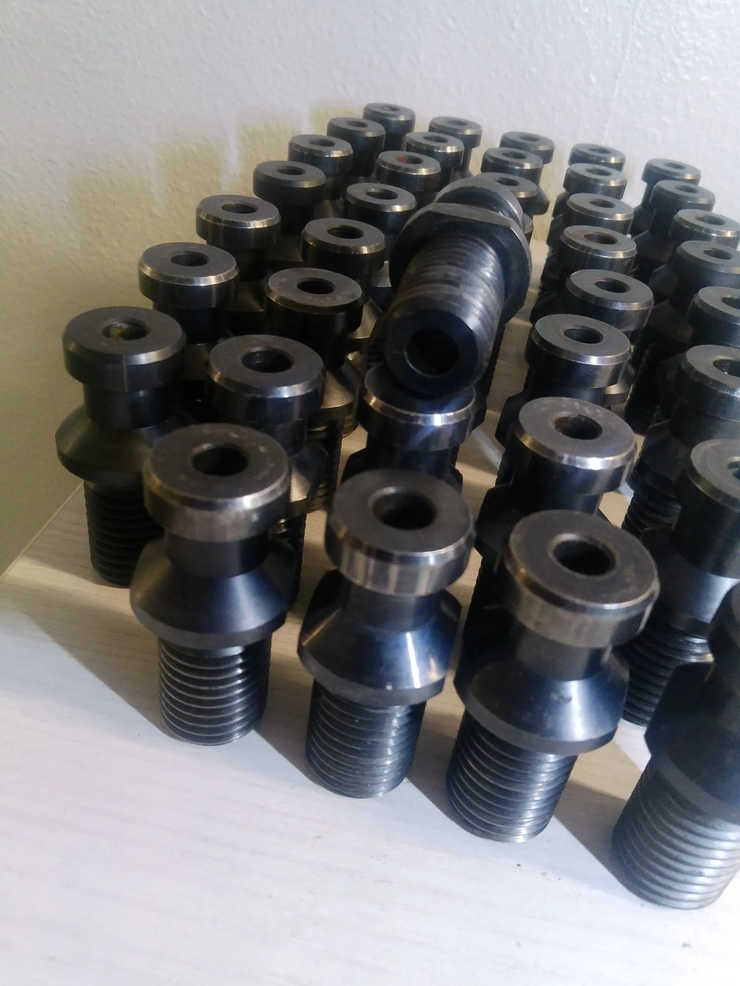 lot of 39 used TSC through spindle coolant CAT 50 Retention Knobs that work with the Matsuura VMCs with 50 tapers that take CAT50 Holders. (verify this works with your machine)