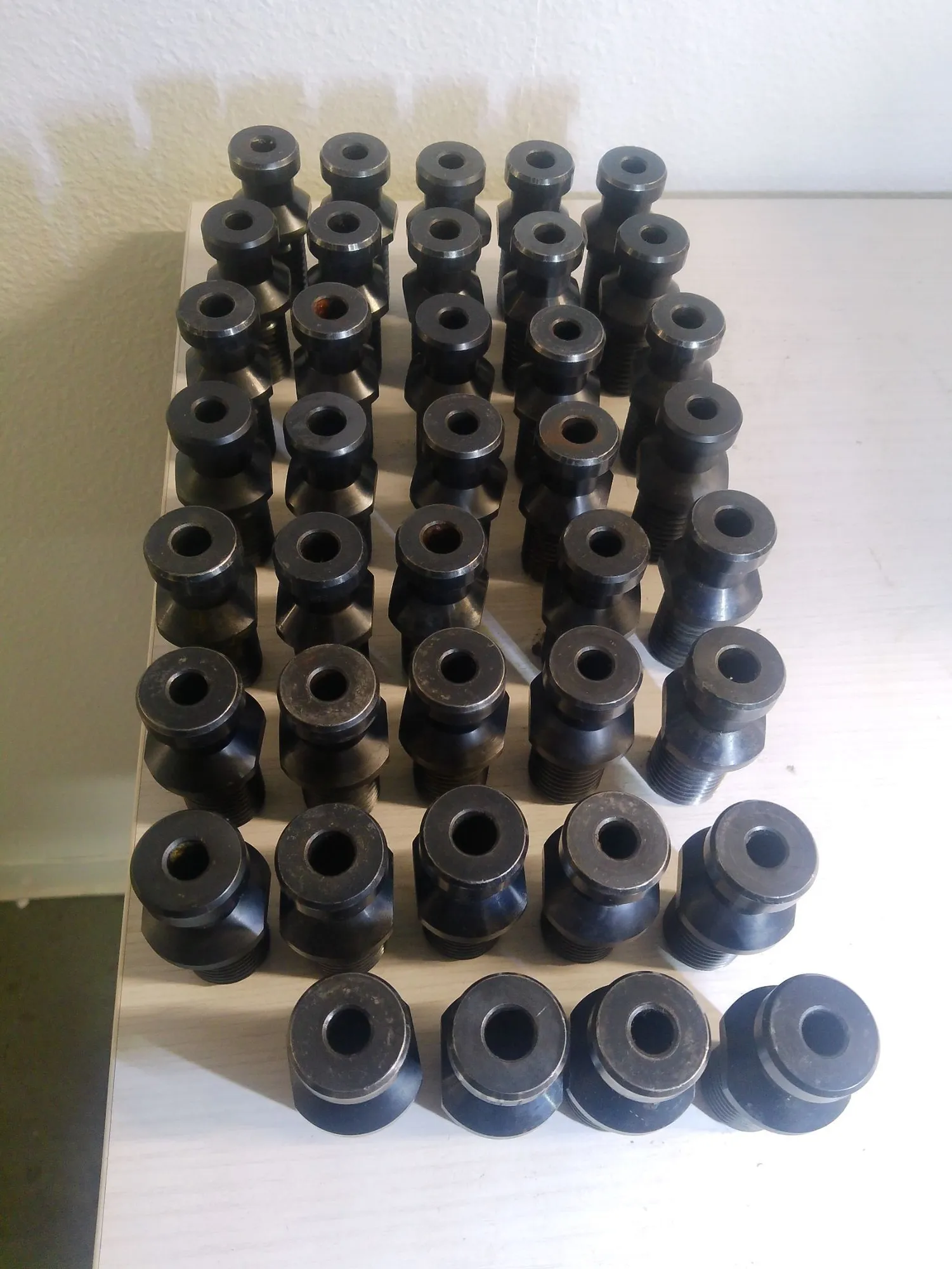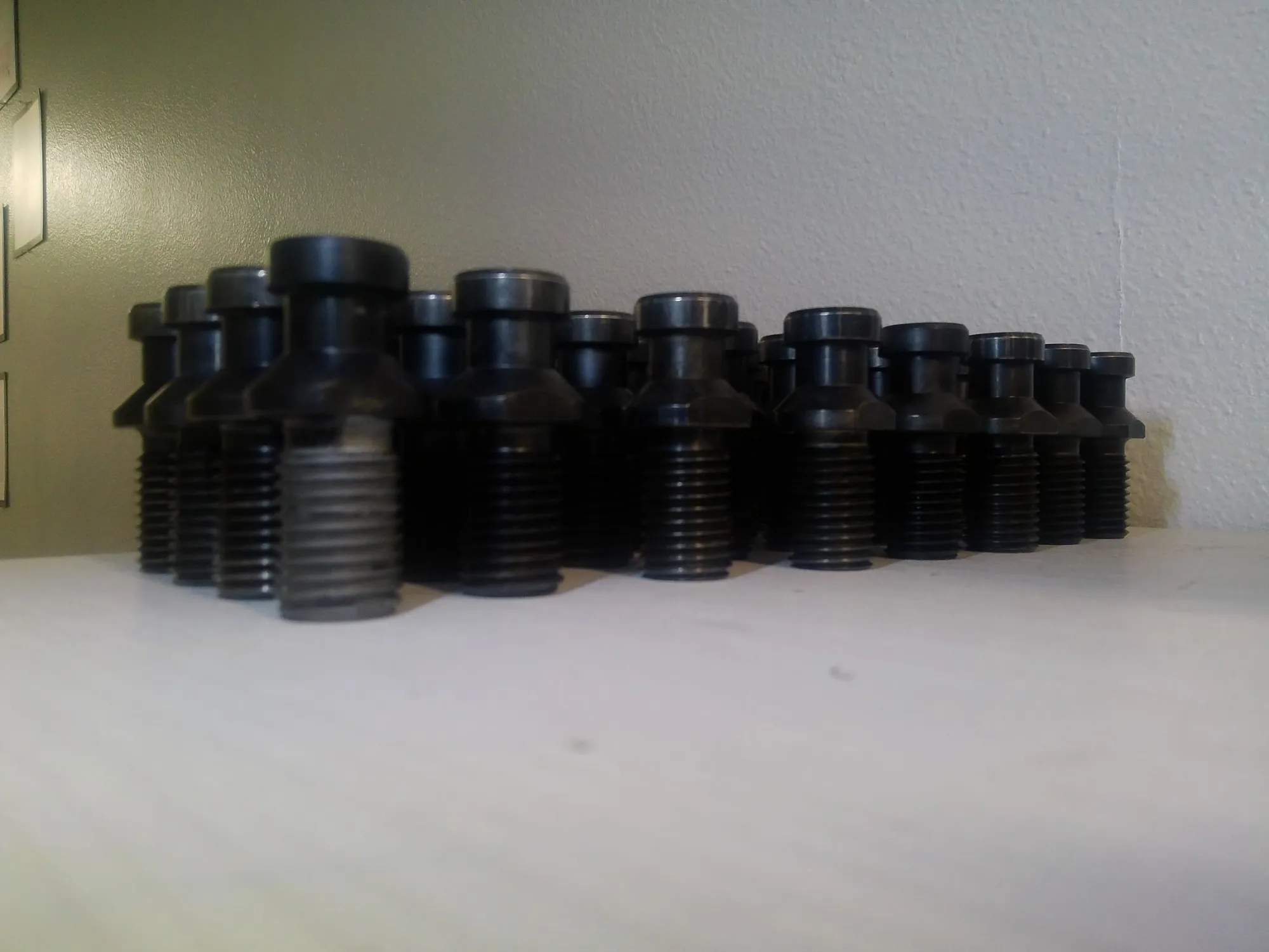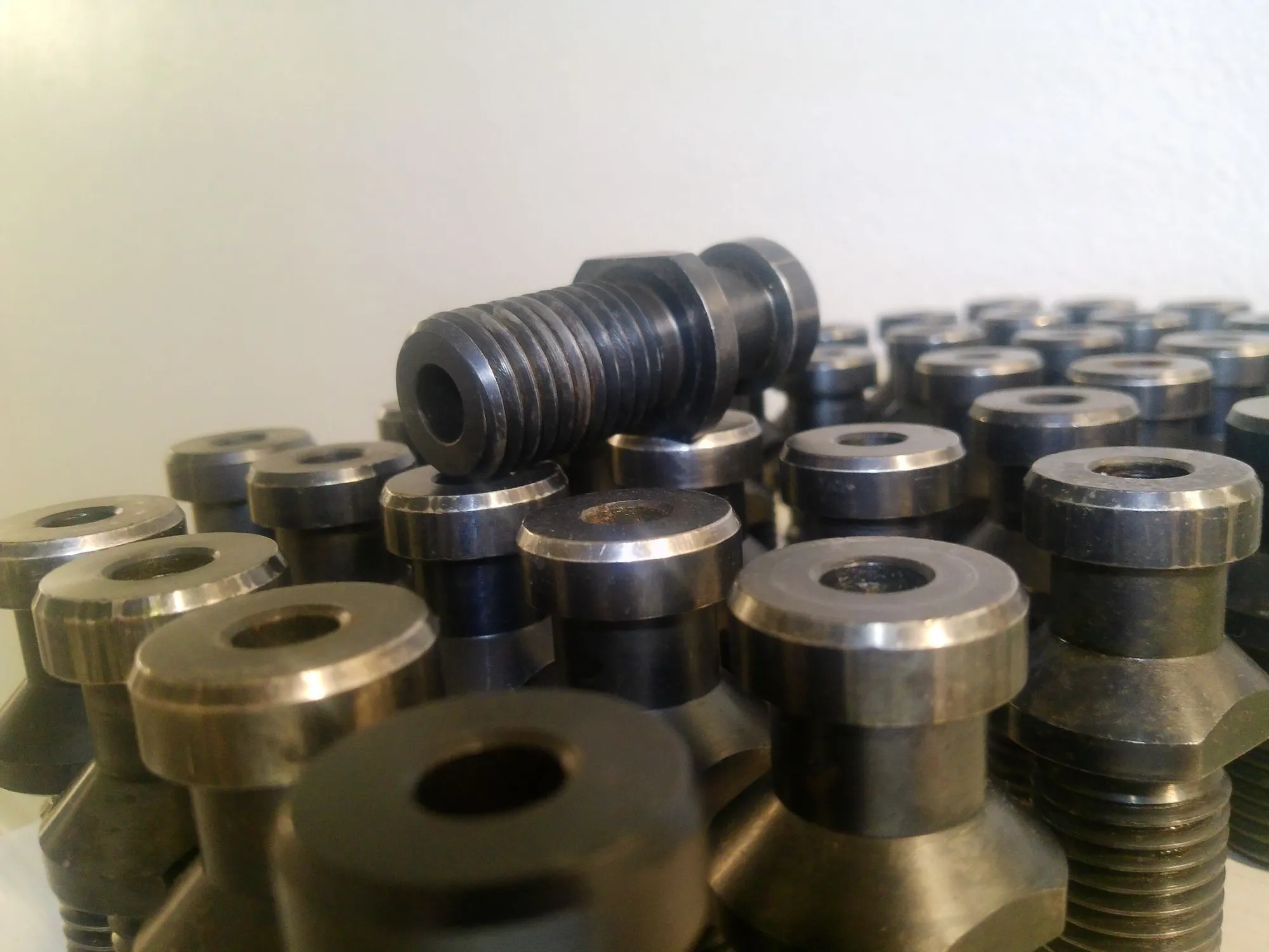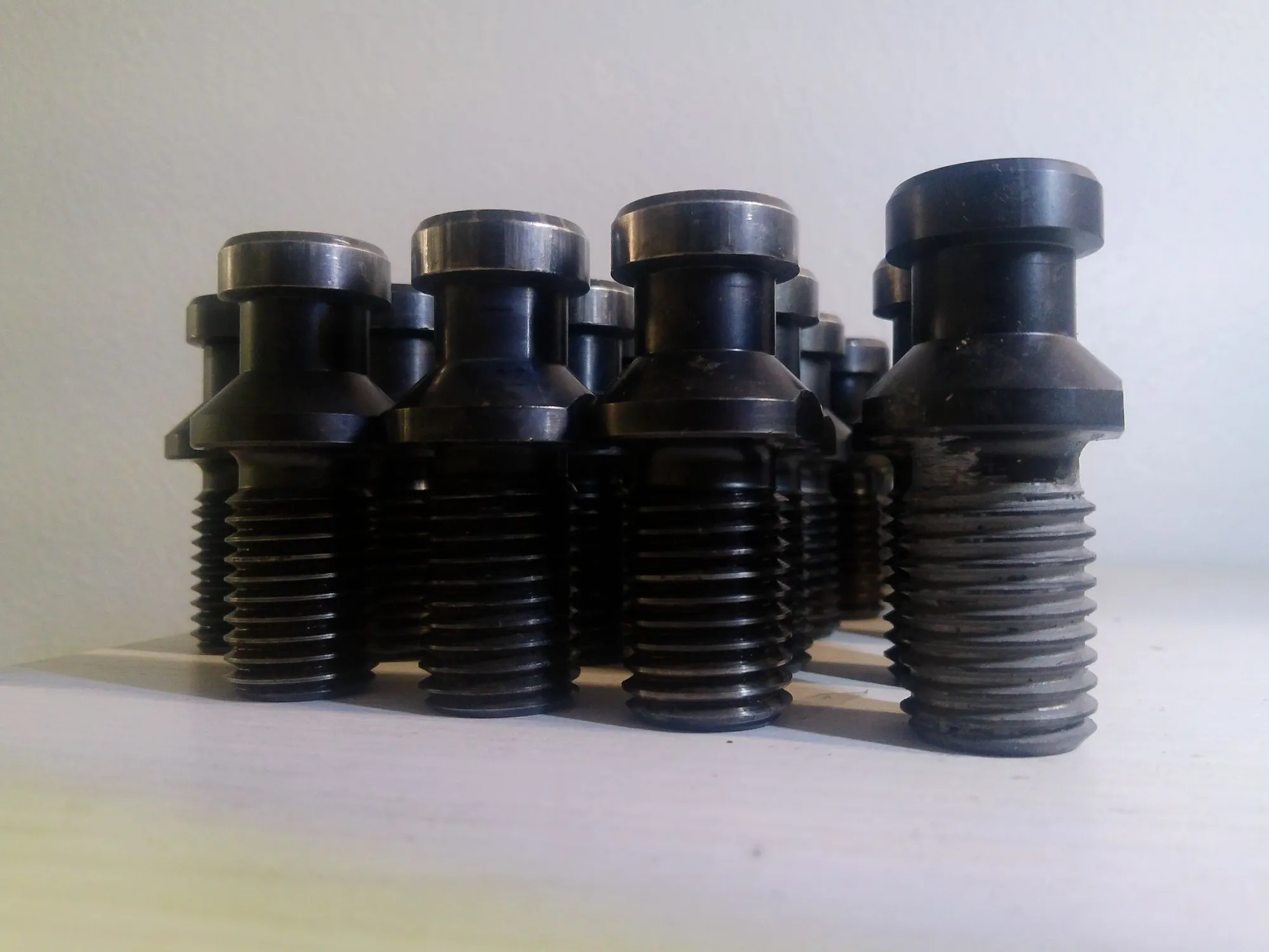 lot of 39 used TSC through spindle coolant CAT 50 Retention Knobs that work with the Matsuura VMCs with 50 tapers that take CAT50 Holders. (verify this works with your machine)